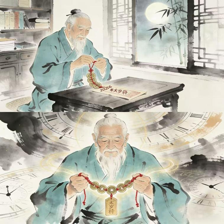 In ancient Eastern wisdom, "Tai Sui" is the annual cosmic energy deity governing human affairs. Inadvertently conflicting with it could bring unexpected challenges. Wise ancestors found harmony through two powerful elements: Five Emperors' Coins from prosperous eras, whose collective energy forms a protective "energy shield," and a Tai Sui talisman charm created through ritual to express respect and transform conflict into protection.